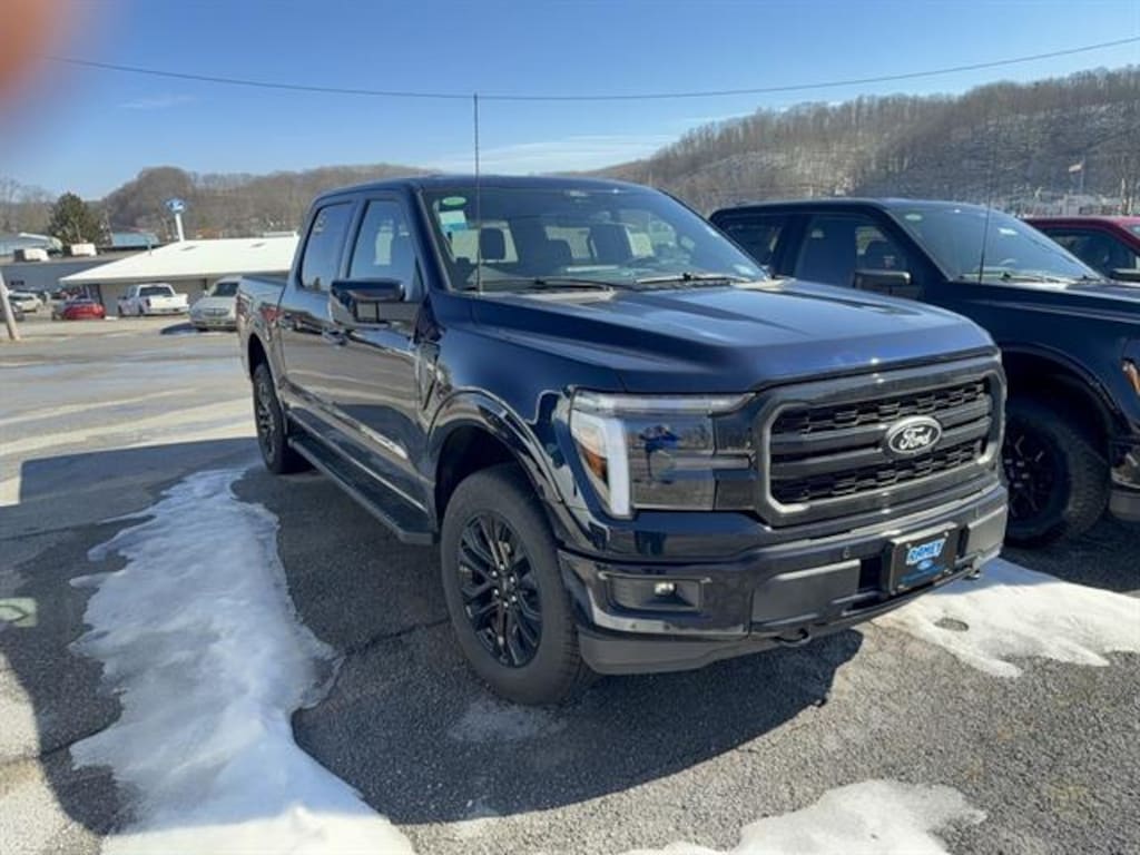 Experience the new 2025 Ford F-150 LARIAT 4WD SuperCrew in striking Dark Blue, with just 10 miles on the odometer. This truck is powered by a robust 3.5L EcoBoost Twin Turbo V6 engine delivering 400hp and 500 ft-lbs of torque, paired with a 10-speed shiftable automatic transmission and advanced 4X4 system featuring both part- and full-time modes. The FX4 Off-Road Package provides off-road tuned suspension, skid plates, and Hill Descent Control for superior performance on any terrain. Inside, enjoy luxury with leatherette bucket seats (heated and ventilated), a 12-inch touchscreen with SYNC 4, Bang & Olufsen premium sound, and wireless Apple CarPlay/Android Auto. Safety is top-tier with Ford Co-Pilot360: adaptive cruise control (BlueCruise), BLIS Blind Spot Info, lane keeping, 360-degree camera, and Pre-Collision Assist with Pedestrian Detection. Additional highlights include the LARIAT Black Appearance Package, power-sliding rear window, integrated trailer brake controller, 20" black aluminum wheels, running boards, Class IV trailer hitch, and Pro Trailer Backup Assist. Ready for work or play, this F-150 LARIAT blends rugged capability with cutting-edge technology and comfort.Price includes: $2000 - Retail Customer Cash - 11756 11756 (Exp. 04/30/2026), $2500 - Retail Bonus Cash - 11762 11762 (Exp. 04/30/2026)