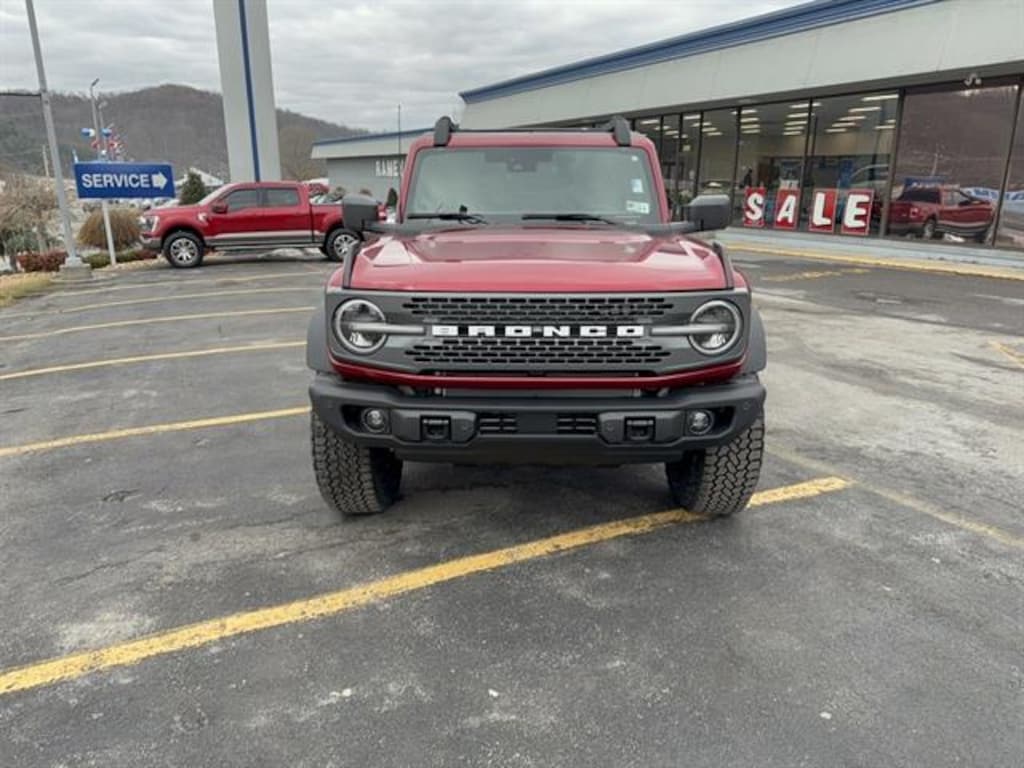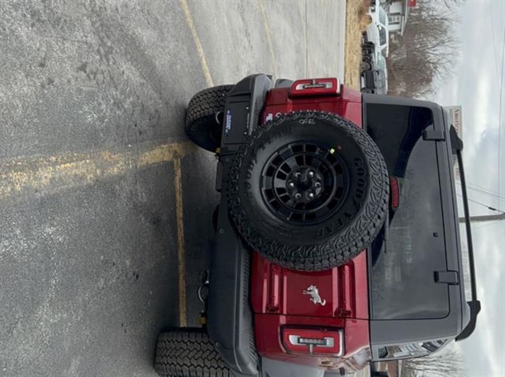 Turn heads and take on any adventure with this stunning new 2026 Ford Bronco Badlands 2 Door Advanced 4x4 in Red, boasting only 8 miles on the odometer. Powered by a robust EcoBoost 2.3L Turbo I4 engine paired with a 10-speed shiftable automatic transmission, this Bronco features the coveted Sasquatch Package with 17" Matte Black Alloy Wheels, High Clearance Suspension, Bilstein shocks, and front/rear locking differentials for ultimate off-road capability. Enjoy comfort with leather-trimmed/vinyl heated front seats, dual-zone automatic climate control, and a heated leather steering wheel. Stay connected and entertained with SYNC 4, 12" touchscreen, B&O sound system, wireless Apple CarPlay/Android Auto, and built-in navigation. Advanced safety comes standard with Ford Co-Pilot360, including Blind Spot Information, Lane-Keeping, 360-degree camera, Adaptive Cruise Control, and Pre-Collision Assist. Extras like a convertible hardtop, roof rails with crossbars, remote start, and intelligent access add convenience and versatility. Experience rugged luxury and top-tier tech in this exceptional Bronco Badlands-ready for your next journey.Price includes: $750 - Retail Customer Cash - 11756 11756 (Exp. 04/30/2026)
