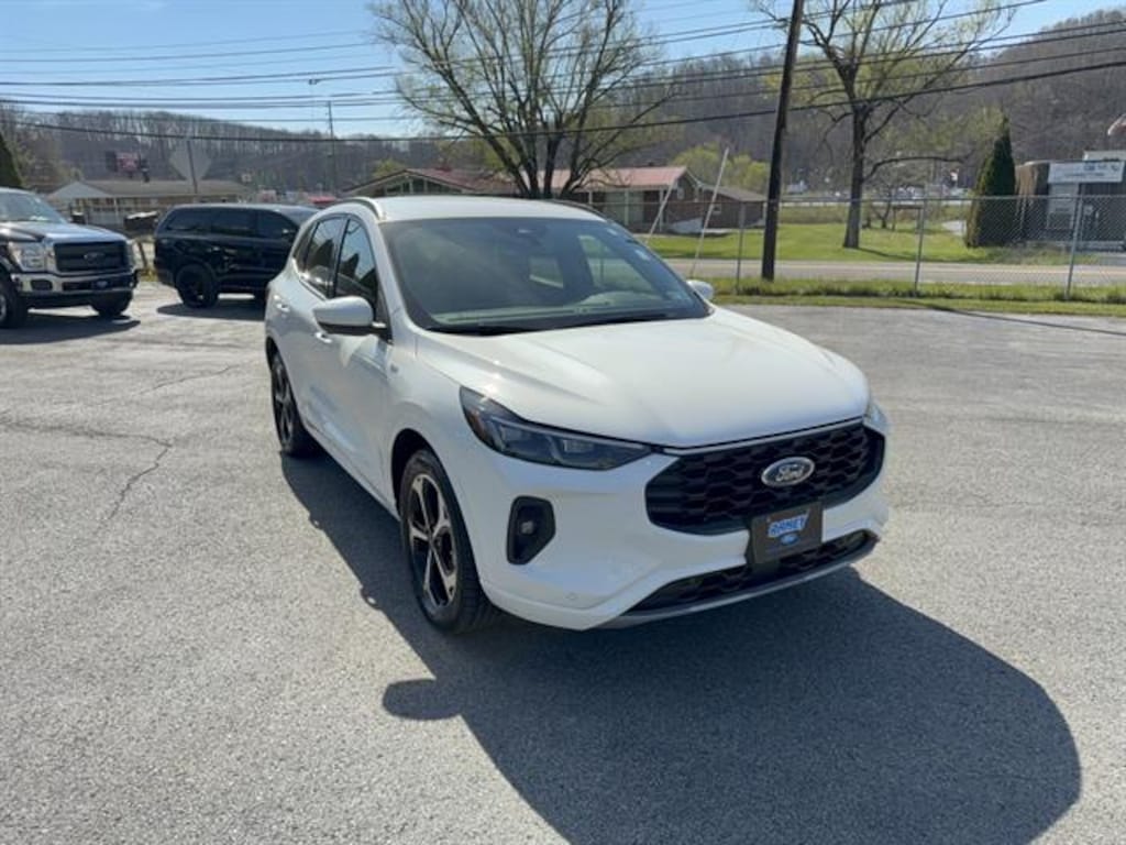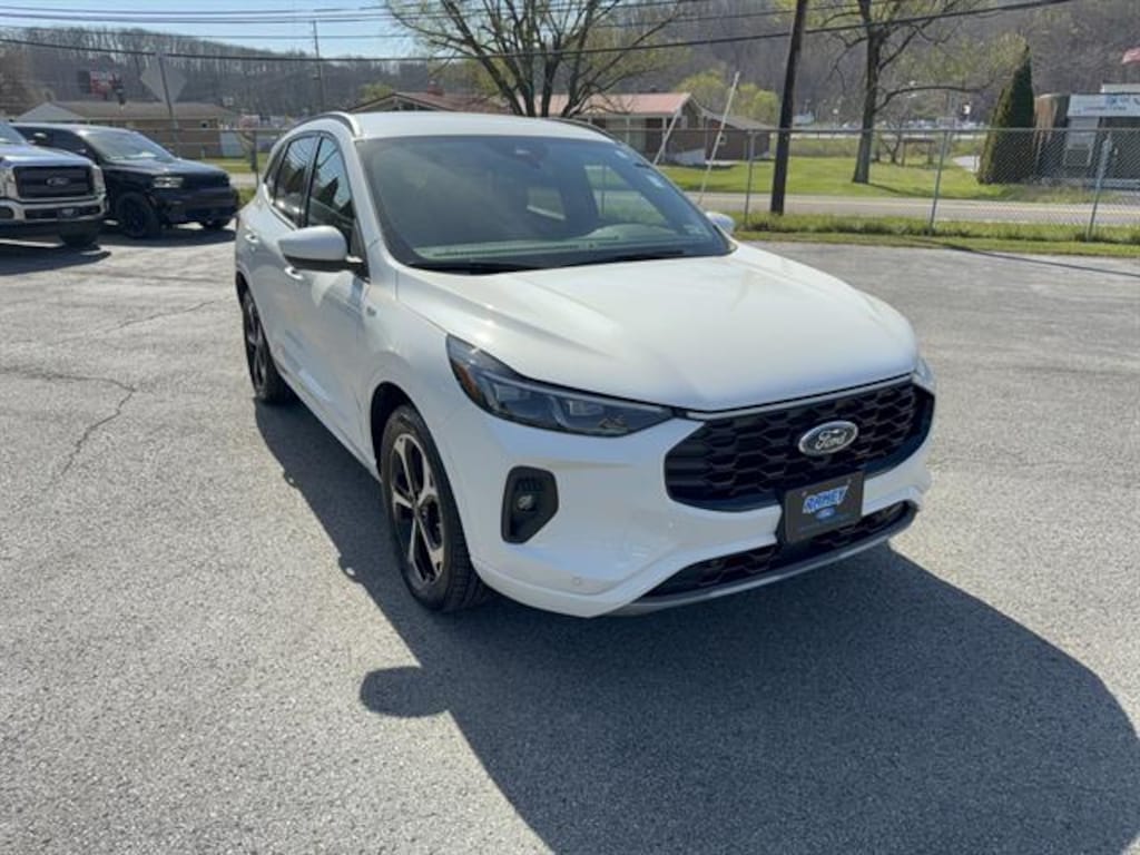 Check out this like-new 2024 Ford Escape Hybrid AWD ST-Line Elite SUV with just 3,395 miles! Enjoy the perfect blend of efficiency and capability with its 2.5L Hybrid I4 engine and all-wheel drive. Stay connected and entertained with a massive 13.2-inch SYNC infotainment touchscreen, wireless Apple CarPlay/Android Auto, and a front wireless charging station. Safety comes standard with features like intersection turn automatic emergency braking, adaptive cruise control with stop-and-go, lane centering, rear cross traffic alert, and a surround view camera system. Comfort is assured with heated front seats, a power liftgate, dual-zone automatic climate control, and customizable digital displays. This Escape also includes premium touches like a leatherette steering wheel, alloy pedal trim, black roof rails, and sport-tuned suspension for a dynamic driving experience. Don't miss out on this well-equipped, low-mileage hybrid SUV-schedule your test drive today!