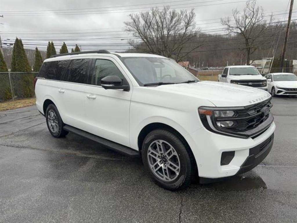 Step up to adventure with the 2025 Ford Expedition MAX 4x4 Active SUV in striking white. Designed for families and explorers alike, this spacious SUV features a powerful EcoBoost 3.5L Twin Turbo V6 engine paired with a 10-speed automatic transmission and advanced 4X4 capability for confident driving in any conditions. Enjoy next-generation technology with a 24-inch customizable digital instrument cluster, Ford Digital Experience infotainment, and a 13.2-inch touchscreen featuring wireless Apple CarPlay, Android Auto, and Amazon Alexa integration. Safety comes first with adaptive cruise control, lane keeping assist, front and rear automatic emergency braking, pedestrian detection, blind spot warning with trailer coverage, and a surround-view camera system. Comfort meets versatility with power-folding second and third-row seating, ActiveX upholstery, tri-zone automatic climate control, and seating for up to eight. Stay connected with FordPass Connect Wi-Fi hotspot and multiple USB-C outlets throughout all three rows. Equipped with a Class IV trailer hitch, trailer backup assist, and advanced towing features, the Expedition MAX is ready for any journey. Visit us today and experience unmatched capability, comfort, and innovation.