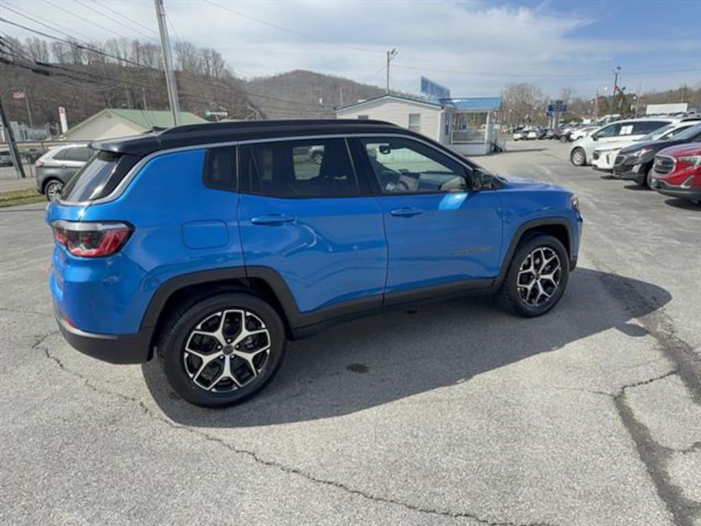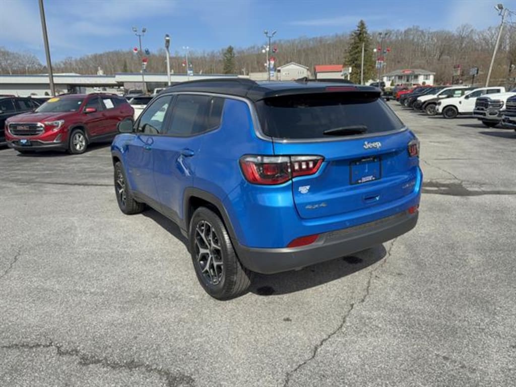 Experience refined adventure with this Blue 2025 Jeep Compass 4x4 Limited SUV. Powered by a 2.0L Turbo I4 engine with 8-speed shiftable automatic transmission and Jeep's legendary 4x4 capability, it's ready for any road or weather. Enjoy cutting-edge technology, including a 10.1-inch Uconnect touchscreen with wireless Apple CarPlay and Android Auto, Amazon Alexa compatibility, SiriusXM Guardian, and a customizable 7-inch instrument cluster. Stay secure with advanced safety features like adaptive cruise control, front automatic emergency braking, lane keeping assist, blind spot sensors, rear cross traffic alert, and a rearview camera. Relax in leatherette bucket seats with power adjustments, dual-zone automatic climate control, and heated side mirrors. Smart convenience touches like proximity entry, push-button start, rain-sensing wipers, a Wi-Fi hotspot, and multiple USB outlets keep you comfortable and connected. With bold black and chrome exterior accents, roof rails, and split-folding rear seats for extra cargo, this Compass blends style, comfort, and versatility for your next journey.